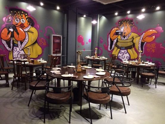 帝王虾,很霸气的店名,感觉有点厉害。好奇心害死猫,决定进去看看。店名装修还是挺有创意的,不是中规中矩的餐饮店,墙壁上全是卡通的龙虾,表示被萌到了。厨房是用玻璃隔开的,我们站在外面都可以看见里面的厨师烧虾的全过程所以不用担心卫生问题。