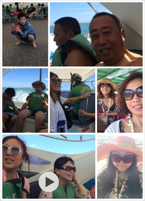 金沙岛是泰国靠近芭提雅的一个小岛,这个岛因为离芭提雅近而且海滩宽阔,水上游乐项目多而受到很多游客的喜欢。从芭堤雅的海滩到金沙岛需要乘坐快艇,第一次 坐这样的高速快艇,迎着凉爽的海风,看着碧绿的海,蓝蓝的天,感觉真是舒服极了。快艇在劈波斩浪地前进,虽然平稳,但时有震动,或者船头高高地跃起,不时 有水花溅到脸上,有些冰凉。在海面上会途径一些水上娱乐项目的平台,在这里雪儿和孙姐体验了一把滑翔伞,用快艇作为动力,人乘着降落伞在海天之间滑翔,时而慢慢漂 落,蜻蜓点水般地在海面蹈浪,然后又重新飞到天空,或者直接落入海里了,很是刺激,本宫惧高所以没敢尝试,还一个劲儿的晕船,丢人。