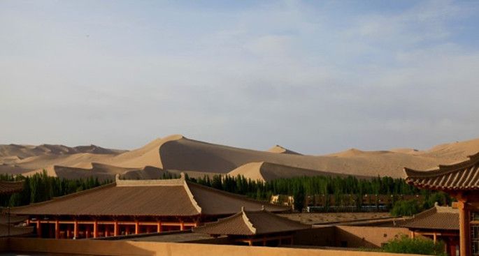 早晨在酒店的摘星阁,一边欣赏远处的鸣沙山一边品尝着美食,惬意的享受着得来不易的慢生活。早饭后,我们准备参观这次旅行的重点——莫高窟。9点钟我们准时到达莫高窟数字展示中心。注:现在莫高窟数字展示中心和实体洞窟是一票的,需要提前预约,多亏我们提前在敦煌智慧旅游旗舰店里买好了票,他们就帮忙预约了呢。可能刚过假期的原因,游客不是很多,停车、换票都非常顺利。由于时间尚早,我们先参观了数字展示中心,这是建设部院的设计大师崔凯先生的力作。这个建筑采用流线形设计隐喻沙丘的造型,材料选择也颇为考究,粗糙的质感好似沙粒,颜色选用了夕阳下沙丘的暗黄色。整体效果非常出色。之后,我们观看了两部介绍莫高窟的电影短片。一部主要介绍莫高窟的历史,另一部通过现代的技术手段诸如三维动画、球幕电影等全方位的展示莫高窟的艺术价值。在这里强烈推荐大家一定要去看啊,非常震撼也非常感人。40分钟的影片结束后,我们乘坐游览车前往莫高窟。现在算是旅游的旺季,处于对文物的保护可参观的洞穴数量也比淡季减少了好多。我们大概只观看了8个洞窟,虽然对于洞窟里面的壁画和泥塑的历史不是很了解,但单从直观的视觉感受就已经震撼到了心灵,去到莫高窟,你不需要过多的语言描述,只需用心静静的聆听历史的声音,让自己浮躁的灵魂得到洗礼。3个小时的游览很快就结束了。最后我们决定在市区找一家好吃的饭馆好好的犒劳一下自己。通过大众点评网,我们慕名来到了一家名为“靖远尕六美味羊羔肉”的小店,点了他们推荐的招牌菜——白条手抓肉、爆炒羊肝,还有我爱喝的杏皮水。饭菜真是超级的好吃,玩爆沙洲夜市的任何一家。酒足饭饱后,我们直接回酒店休息了,期待明天会是个好天气。