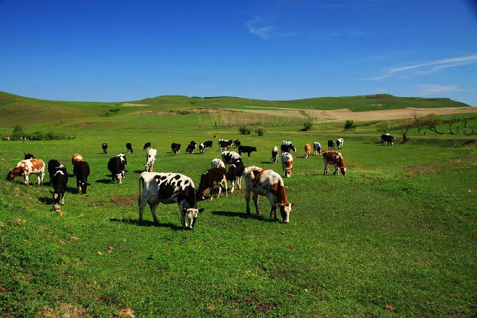 离开海满公路后,车驶向黑山头,李师傅说那块儿的草原是最肥美的。期待中……一路沿途的车辆很少,偶尔有俄罗斯小车擦肩而过。无法用语言形容这一路上的风景,太喜欢了!还有黑白花相间的奶牛(原来我对黑白配的动物情有独钟)。