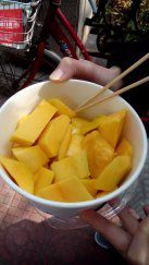这就是自由行的最大好处啊。收拾了一下出门吃了个阿嬷的沙茶面(15元),买了碗土笋冻(10元)就到村口公交站坐公交到厦大啦!我们坐29路去的,是人称万能公交的一条线路哦,厦门的不少景点它都经过的呢!在厦大西村站下,就能看到厦大宏伟的校门啦。毕竟是中国最美丽的校园,所以在厦大学生的上课期间,学校只在12:00到14:00以及17:00以后开放,而且要携身份证排队入校。周末和寒暑假就全天开放。在门口排队的时候,会看到不少水果摊卖切好的芒果,一大盒十块钱,基本上都是甜的,可以随便挑选一家喜欢的买,真的好好吃!还有很多卖厦大地图的,也可以买一份。因为厦门大学真的很大,要买那种大而全的,小的那种没什么实质用途,用完做纪念也是不错的。