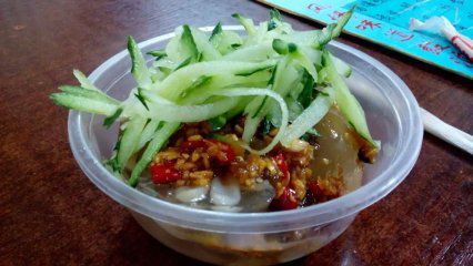 我和我朋友就都能接受啦。伴着青瓜丝,醋和酱油,吃起来冰凉冰凉的。鼓浪屿189海蛎煎那里还有放辣椒和芥末,而且十块钱有七个,超级划算!
