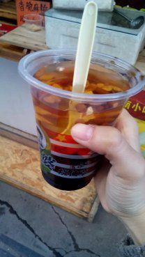 第五名:八婆婆烧仙草(龙头路144号)。烧仙草5元/份。在市场附近的,比较难找,我也是无意间看到的。有蜂蜜和奶茶两款,我买了蜂蜜的。凉凉的仙草配上温温的蜂蜜水,伴着花生,绵豆,芋圆,薏米。真的是绝妙的搭配好吗!