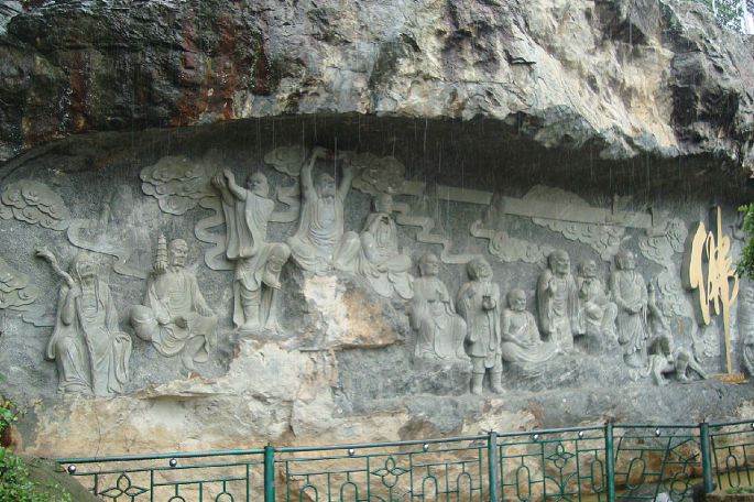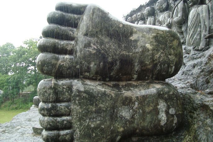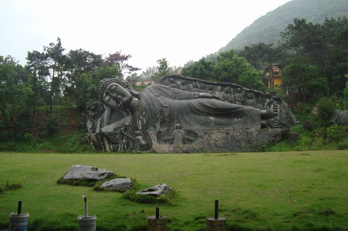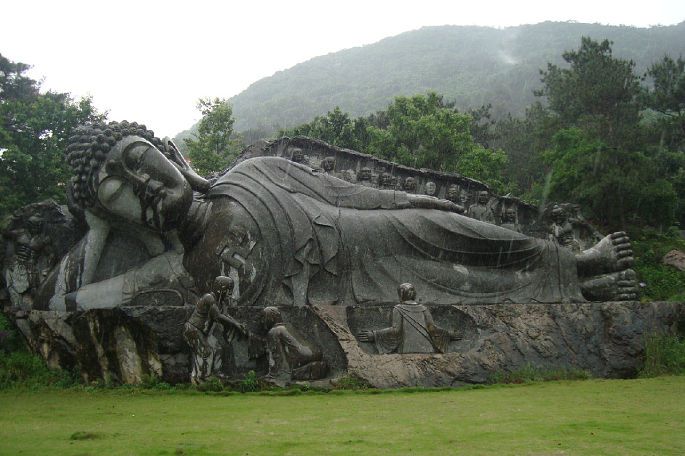 9、长乐卧佛位于潭头镇边兰村锦锂岩,距闽江河口国家湿地公园3公里,5分钟车程。目前是全国最大的卧佛.静卧在密林之下的这尊巨大的释迦牟尼石佛像,呈侧身睡卧状,一臂曲肱而枕,体态安详,人们称这种姿势为“吉祥卧”。佛的身后环立着12尊表情丰富的石佛像,是佛祖的12大弟子,人称“十二圆觉”,传说这是佛祖释迦牟尼在逝世前,向他的弟子们嘱托后事的情景。佛教称之为“佛祖涅槃”。