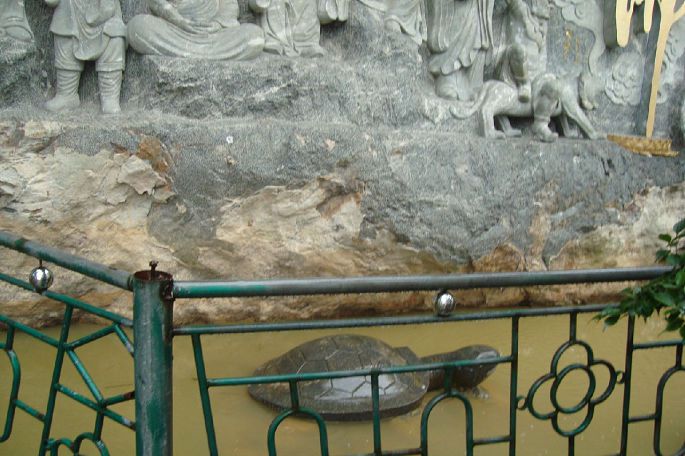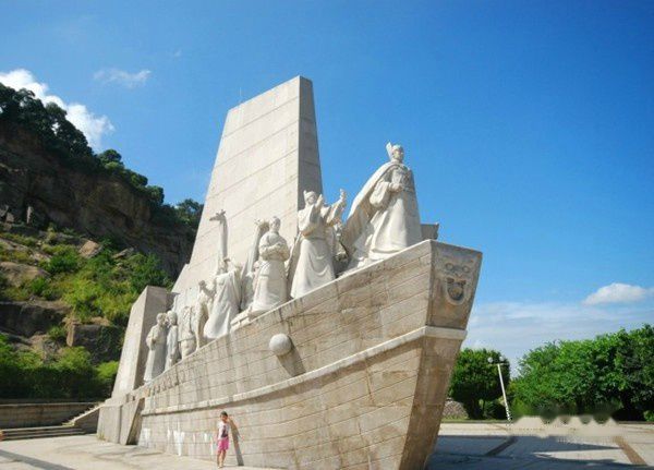 2、长乐郑和广场目前已建成的景点长达2.3公里,自西南向东北分别是绿色明珠、月亮湾、吴航书院、郑和航海馆、郑和石雕像、三宝亭、太平港帅营、郑和宝船、郑和广场、郑和祭海坛、郑和舟师启锚处、郑振铎公园、吉祥长乐园、渔人码头、望江亭、吴航广场、金刚腿公园等。公园的核心景观是郑和石雕像。14.05米的高度表示郑和七下西洋首航时间为公元1405年,基座宽7米、高2.8米寓意前后七次下西洋历时28年。 石雕像重达700吨,用141块优质花岗岩精琢而成,基础深入岩层3米,可抗12级强台风.。