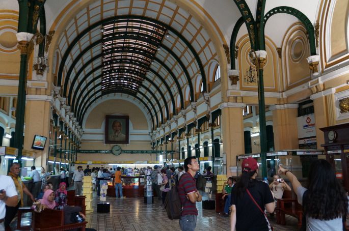 ►【西贡中央邮局】西贡邮局表里如一,内外一样霸气精致,我爱邮局绿。 悬挂的胡志明爷爷画像告诉我们现在是在越南。