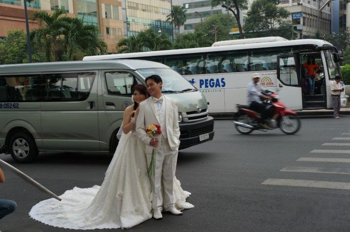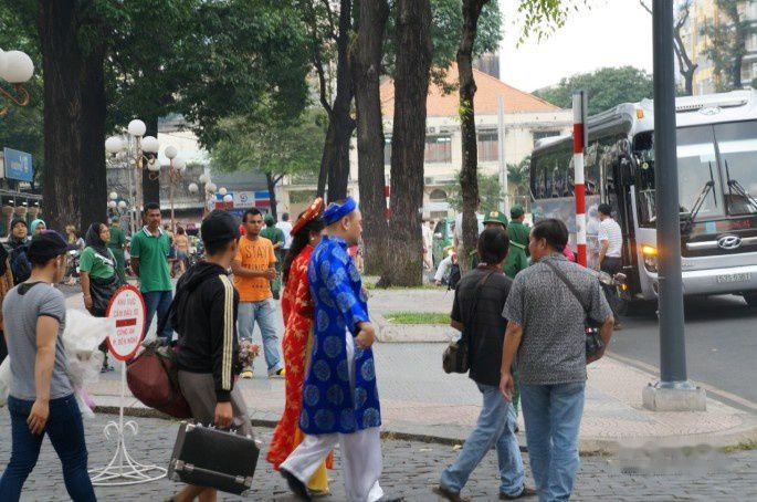 ►教堂周围少不了拍结婚照人们,西式和越南式两对新人~