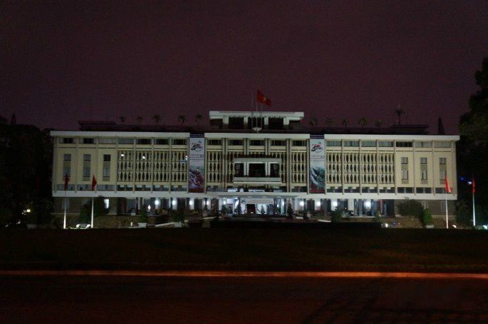 统一宫建于1966年,是一座占地面积达12万平方米的庞大四层白色建筑,前南越政权的总统府所在地。内有100个装饰华美、富丽堂皇的大小厅堂,可满足外交、宴会、娱乐、居住、军事指挥等各种需要。庭院设计和建筑一样采用左右对称的布局,互相呼应,浑然一体。