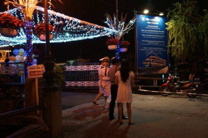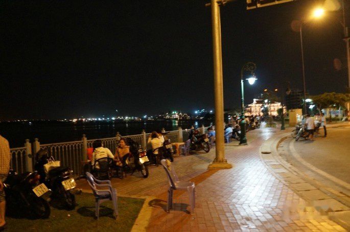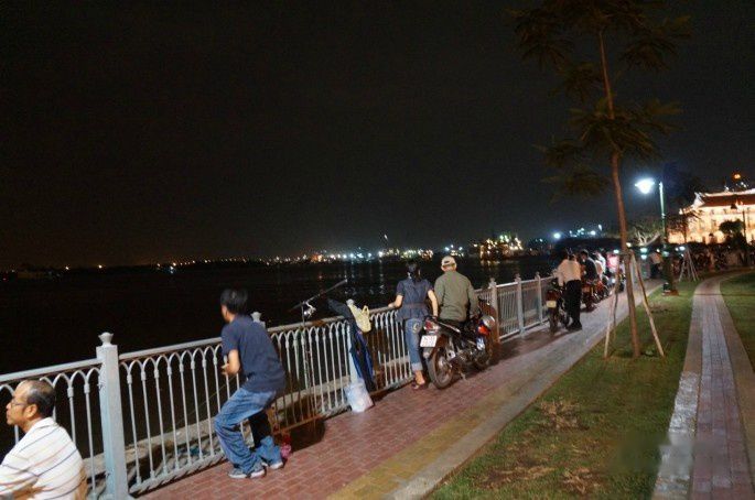 现实夜晚的西贡河是中国旅行团必经地和越南人民的约会场所。装饰漂亮的游船上,大大的中文标示,热闹却并不喜欢。西贡河边聚集着很多越南人民,或是情侣倚靠摩托车约会,或是大叔垂钓,或是三五好友聚集在一起闲聊。我们三个既不游船又不约会的大灯泡着实有点小亮。