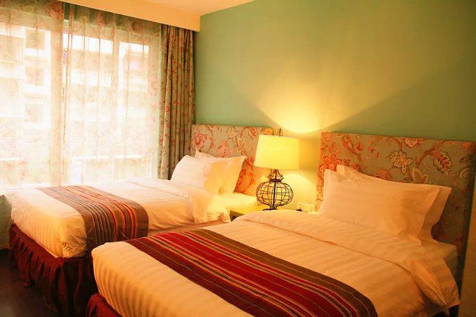 第一天,团队要去冠岩,杨导不赞同,解释前段时间桂林发水,冠岩受到了影响,观光火车停运,不如去银子岩。大家不信,早上7:30分出发,路上不是堵车,就是在修路,歪歪扭扭近11点才到冠岩景区,剩下的就是排队、换景区车,千人集聚在一个山洞里焦急等待。看冠岩不足一个小时,却花了我们大半天,痛苦无法用语言诉说。杨导总是微笑着跟我们讲解,不推荐任何景点。为使我们散客享受团体票,他每到一处都积极协调,龙脊梯田85元,漓江漂流120元,大榕树15元、印象刘三姐B2区198元……桂林的酒店是我们自己订的,抵达后让我们是感觉非常的失望......阳朔酒店最后决让杨导给我们订,他推荐我们选择了一家名为M的酒店(M酒店)这个酒店位于阳朔县石马圆盘,离印象刘三姐非常近,就是离西街稍微远一点,但是最终没让我们失望,酒店式简单现代的装修风格,整体感觉非常好,床睡得特别舒服,房间虽然不宽敞,但是设备没话说。