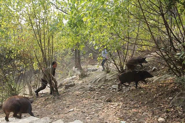 区门票免费进入徒手逮猎场,野猪、野兔、野鸡随便逮,逮到的猎物可以免费带回家。于是我心动了,就约了小伙伴,浩浩荡荡向九皇山出发。