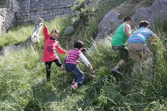 看孩子追着野鸡、野兔满山跑,亲手逮住猎物时候的笑脸,心里美滋滋的~~