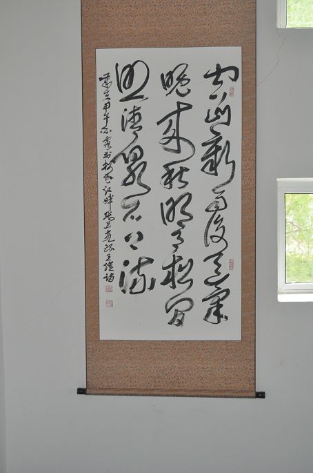 那幅作品是张君亮在他们项目开工典礼时酒后的行草,挂在办公室的墙上,衬着老船木茶台,更显出了老板的儒雅品位。