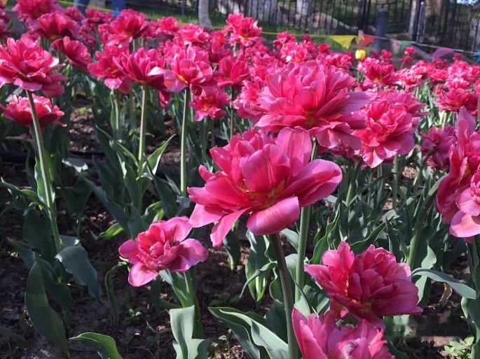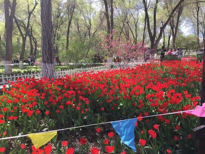 一进入公园就被映入眼帘大片的郁金香花海包围了,颜色艳丽,气味芬芳,一瞬间,还以为是来到了江南哪片花红柳绿的城市。