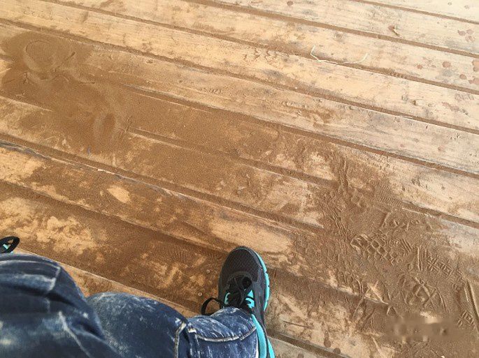 返回休息处,每个人都在清理满鞋的沙子,看,这一地沙尘都是我鞋子里的哦!^-^