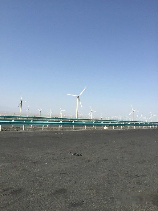 在乌鲁木齐去吐鲁番的途中,沿路南行,在通往丝路重镇达坂城的道路两旁,上百台风力发电机擎天而立、迎风飞旋,与蓝天、白云相衬,在博格达峰清奇峻秀的背景下,在广袤的旷野之上,形成了一个蔚为壮观的风车大世界。这里就是目前我国最大的风能基地——新疆达坂城风力发电厂。——没错,以上介绍转自度娘。
