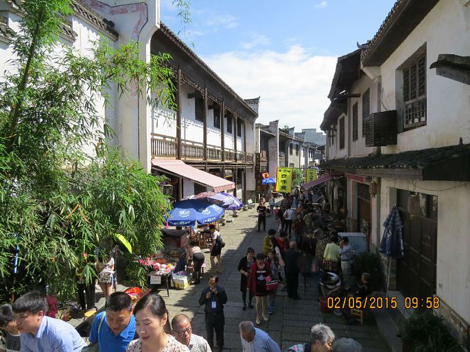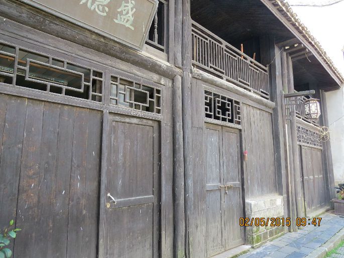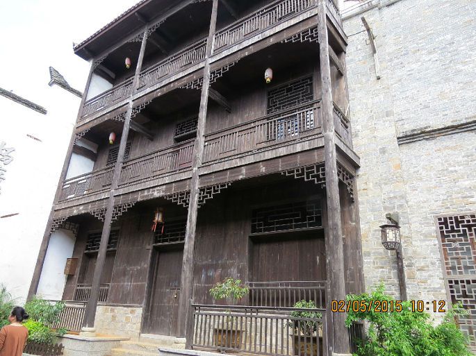 古镇的建筑特色,感觉是门特别高,层高大,两头是翘沿高墙。
