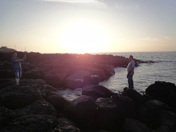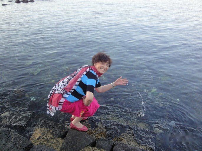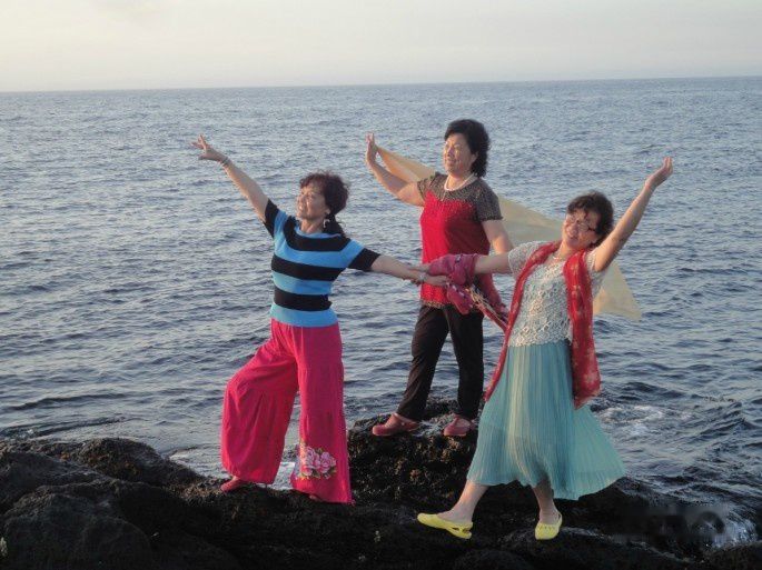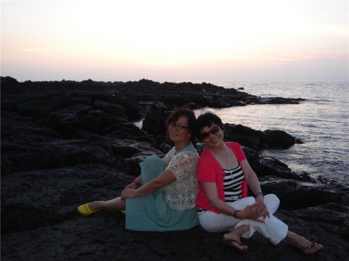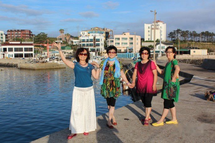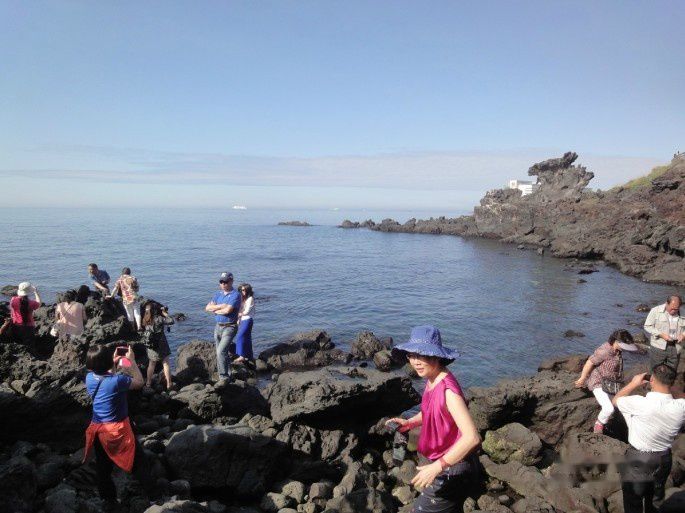 6月15日我们乘直航登上韩国济州岛。岩礁石滩观海潮,环岛漫游赏美景。湛蓝海水层层浪,成山海女劳作忙。我们迎着海风,穿行礁岩乱石中。我们都还年轻,勇攀韩国第一高峰。