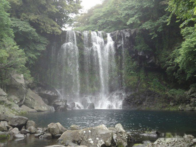 济州岛“神话之岛”。天帝渊瀑布,传说因玉皇大帝身边的七仙女偷下凡间沐浴嬉戏而得名。天帝渊,顾名思义,是“天帝之渊池”之意,天帝渊瀑布,济州岛第一瀑布(高22米,水深21米)。