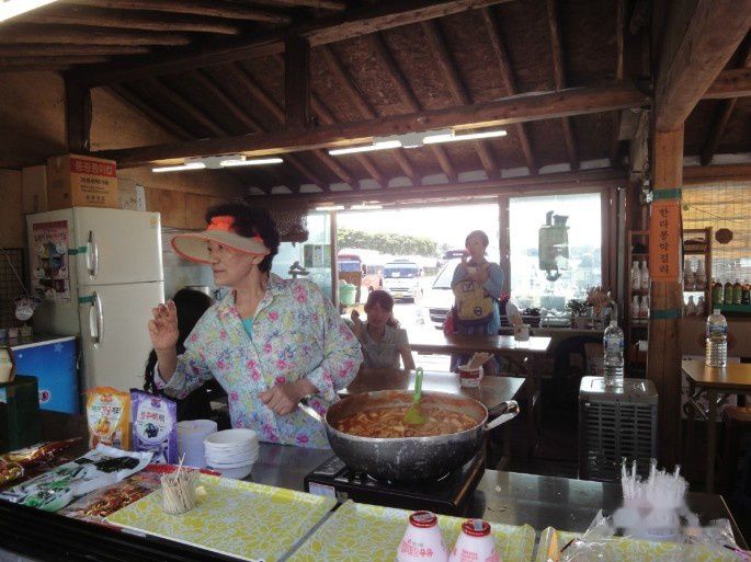 我们吃着泡菜,饱尝海鲜美味,体验异国风情。