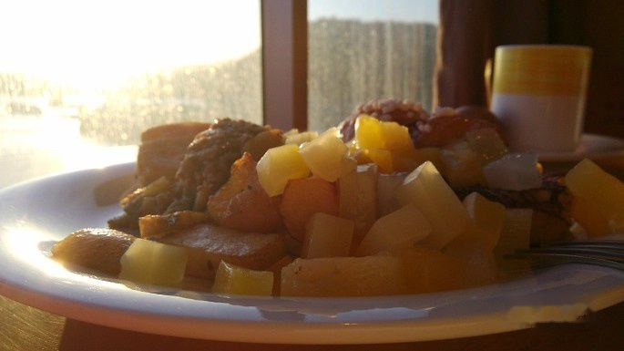 沐浴在晨曦下的早餐。