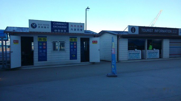下船就是这样一排,有辆车专门换钱。我虽然没带韩币,但是也懒得换了。
