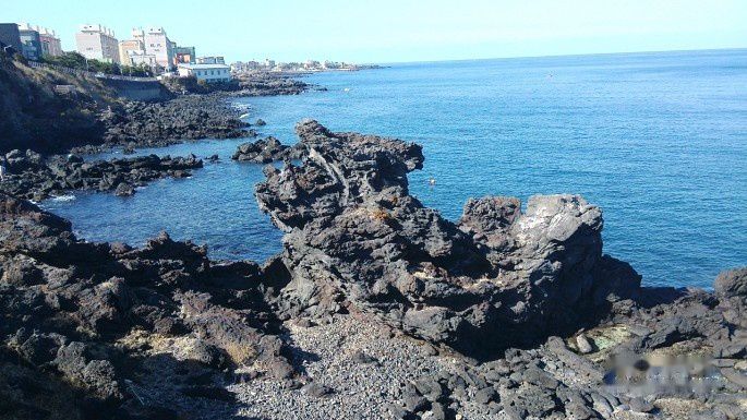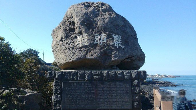 购物结束。我们继续坐大巴回到了码头附近。济州岛的经典景点龙头岩。