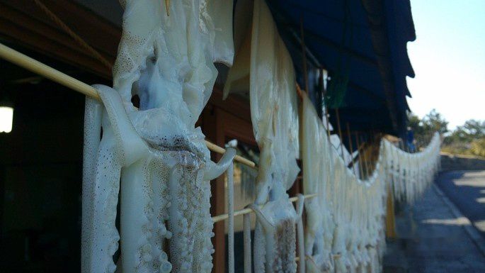 这样一串乌贼鱼人民币20元。真贵啊。