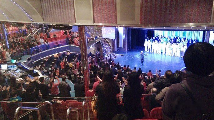 最后一天卡鲁索剧场的演出叫《我有一个梦想》,是员工的才艺秀。但是不像前两天的演出分为两场,这次的只有一场,因此人满为患,我们凑了半天热闹,却怎么也挤不进去,只能站在音响师背后偷拍了几张。