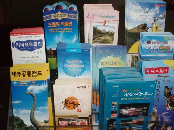 2个多小时就到济洲,机场很小,除了这些满是泡菜文的宣传单还真没出国的感觉 = =