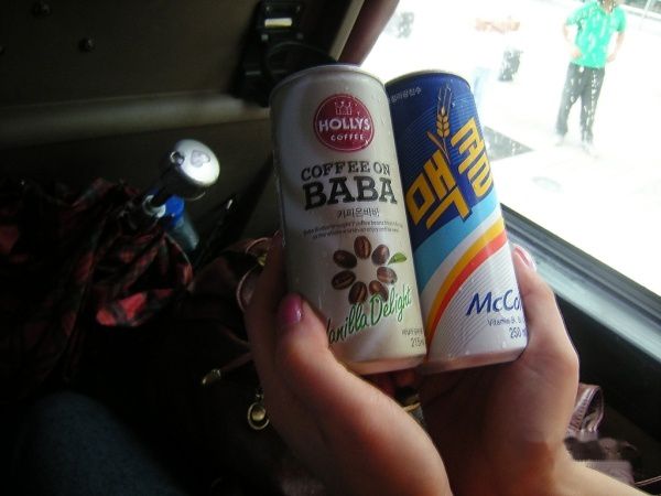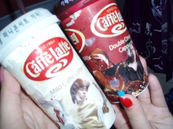买咖啡喝,本地咖啡,上面好像是个韩国组合 = =原谅我至今也没记得他们的名字……