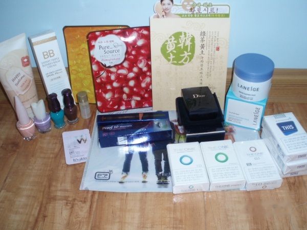 化妆品店也非常多,多是本土品牌,比如MISSHA,THE FACE SHOP,或者没见过的名称。而且店员异常热情,只要进去就送小礼物。比如饮料、化妆绵、笔或者塑料文件夹等 = =可惜对韩妆有点不感冒,只买了些指甲油、睫毛膏和面膜之类的。