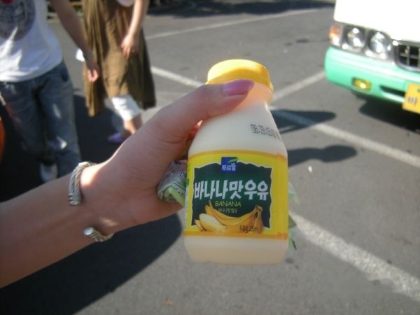 买到了很多人推荐的香蕉牛奶,还有哈密瓜冰棒。