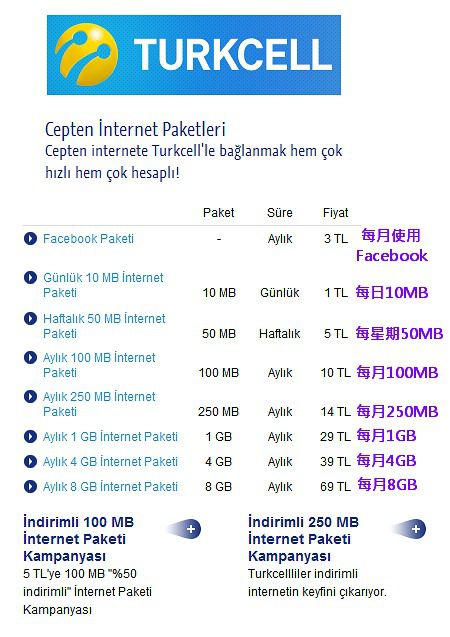 在土耳其最具竞争力的三家电信运营商,分别是Turkcell,Vodfone和Avea。他们都提供电信通话套餐和手机上网数据流量套餐。不过自从微信普及以后,我觉得基本上也不必专门购买手机通话和短消息套餐了,根据在土耳其停留的时间和使用习惯选择合适的3G上网流量包即可。有一点值得注意的是,土耳其是实行通信管制的国家,外国游客如果购买了通话和短消息套餐则需要进行注册登记,并且即便注册了仍有一定的概率会被锁机,如果被锁,这部手机在土耳其国内就永远无法使用了。