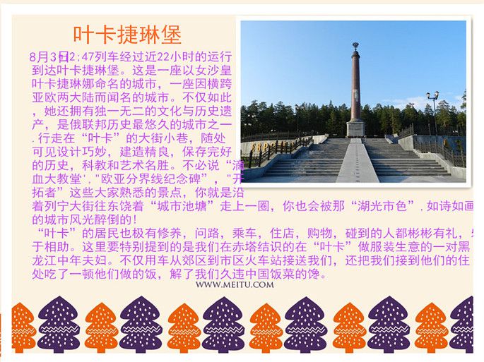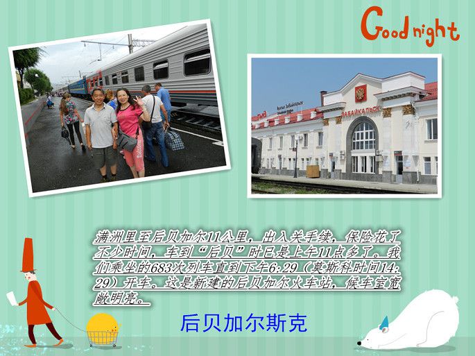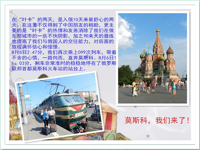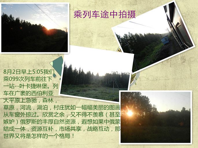 2014年7月25日至8月20日,我和老伴背着行囊,挎着相机,满怀忐忑、神秘和亢奋,从满洲里口岸出境,乘上西伯利亚大铁路西行的列车,先后游览了后贝加尔、赤塔、伊尔库茨克、新西伯利亚、叶卡捷琳堡、莫斯科、谢尔盖耶夫、圣彼得堡等俄罗斯八座大、中、小城市,实现了多年的夙愿。