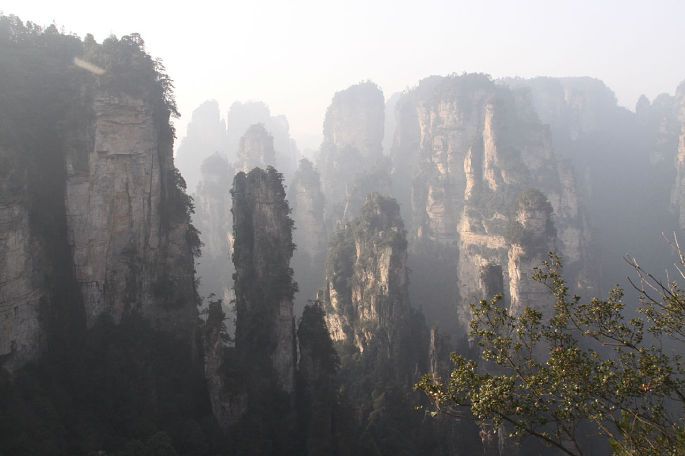 DAY 2,吃过早餐8点出发。考虑到昨天天子山没怎么看,所以今天的行程是天子山--十里画廊。只看最值得看的。