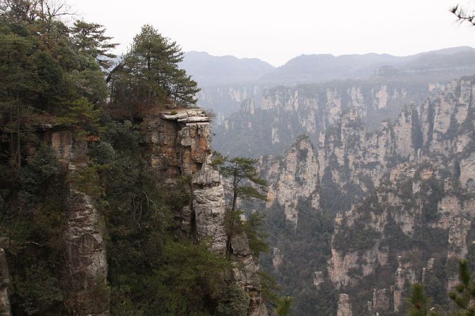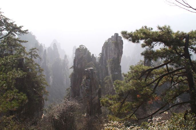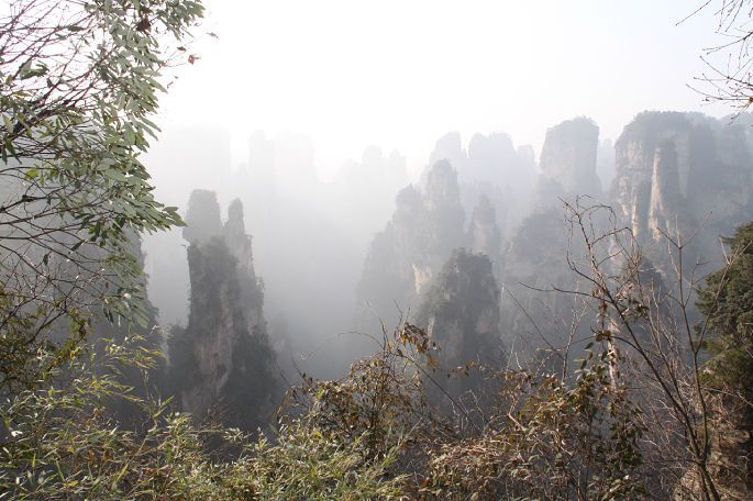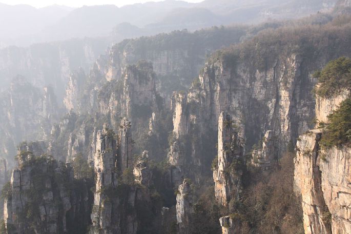 有点小雾,看起来既壮观,又非常朦胧,很有意境。所以各位看官如来张家界,一定要去天子山啊。冬天黑的早,看了半个小时就往客栈赶了,这样可以早点回去休息,保存体力,准备第二天好好玩,毕竟一宿没睡。不比年少时候!