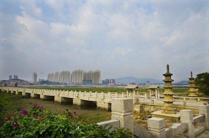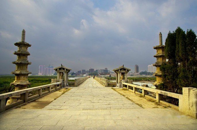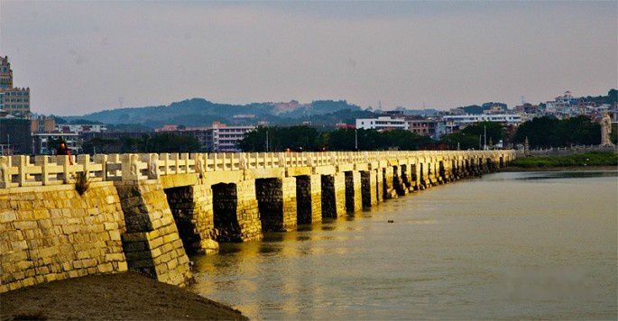洛阳桥又称万安桥,在市区东北郊洛阳江入海处,该桥是举世闻名的梁式海港巨型石桥,为国家重点文物保护单位。宋皇祐五年(1053年)兴建,嘉祐四年(1059年)建成。历时六年。桥长八百三十四米,宽七米,有桥墩四十六座,全部用巨大石块砌成。在中国桥梁史上与赵州桥齐名,有“南洛阳,北赵州”之称,