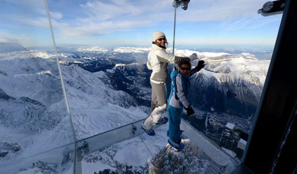 去年,法国阿尔卑斯山夏蒙尼峰一侧安装了这个玻璃箱,该玻璃箱悬挂在两英里(约3219米)的高空,一低头就可以看到阿尔卑斯山的极致美景。