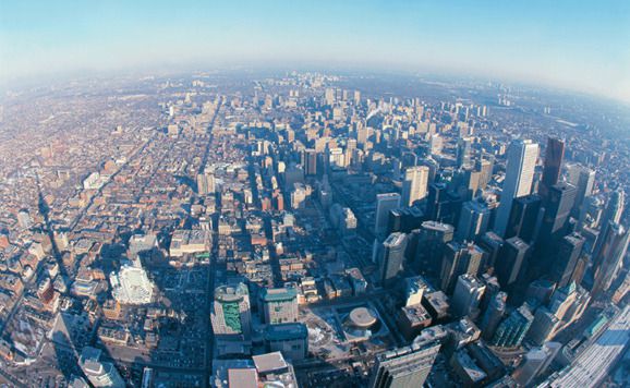 著名的加拿大国家电视塔(CNTower)玻璃走道建于1994年,是世界上首个玻璃步道。站在1122英尺(约342米)的高空向下望去十分刺激。全塔高达553米,直耸多伦多云霄,可以绝佳俯瞰多伦多的美景。
