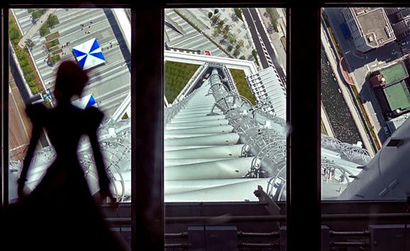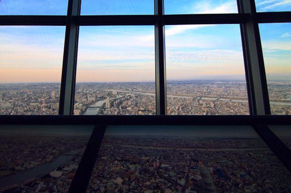 晴空塔是世界上第一高塔,高逾2000英尺(约610米)。晴空塔上有两个观景台,其中有一个位于晴空塔高约1150英尺(约351米)的地方。不仅可以在观景台的玻璃地板上走动,还可以在这个高逾百层的观景台俯瞰东京全景,让你刺激和美景两不耽误。