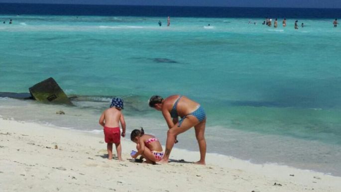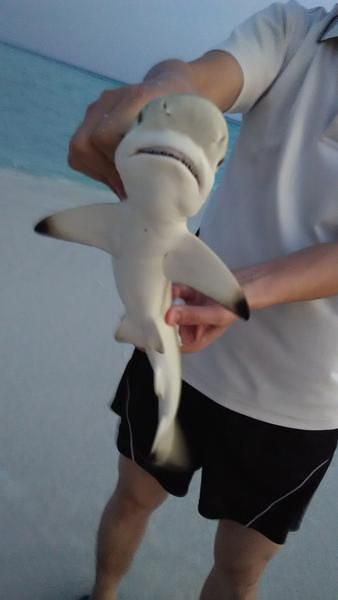 我们还遇上被海浪冲上来的三条小鲨鱼,好不容易抓到一条拍照后送回海里了