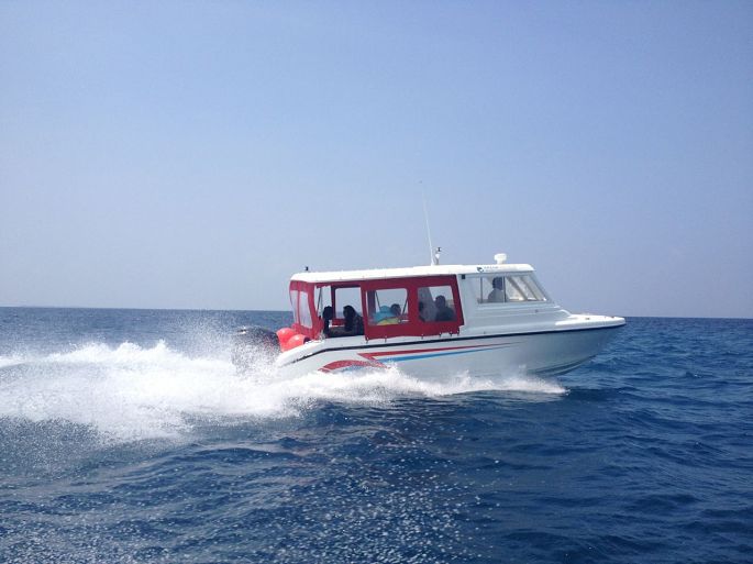 这种可载6-8人的快艇收费100-150美金,海上奔弛35分钟直接上岛,方便快捷。