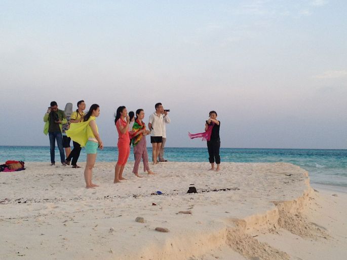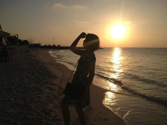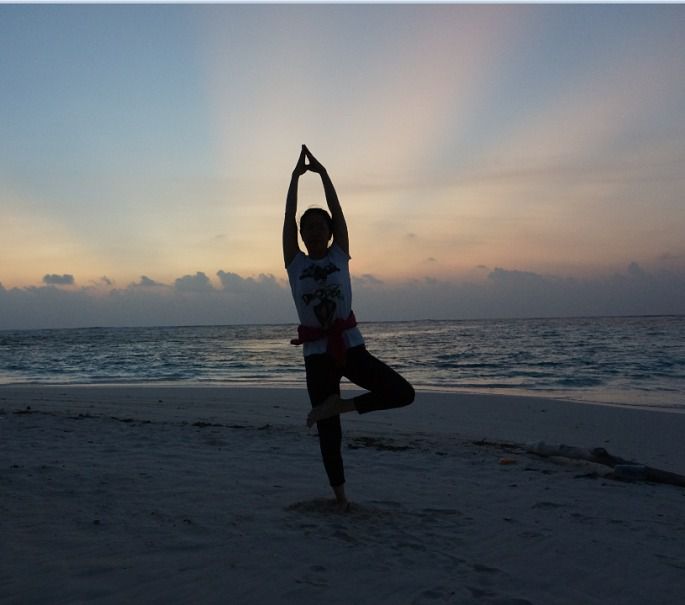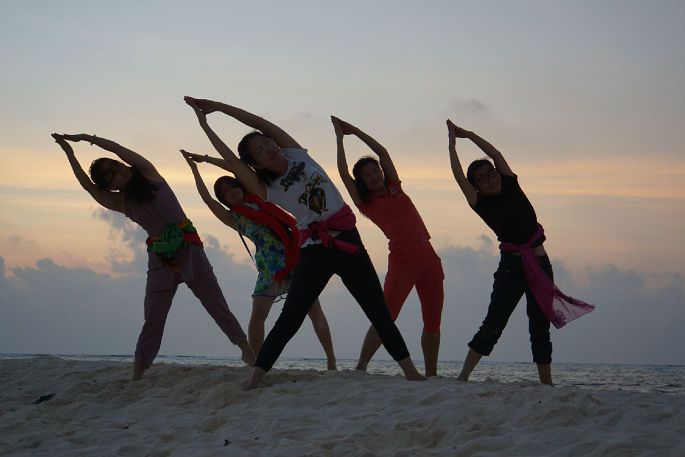 早上5点30从酒店的后面的小路步行5分钟来到东海岸看日出和练瑜伽,