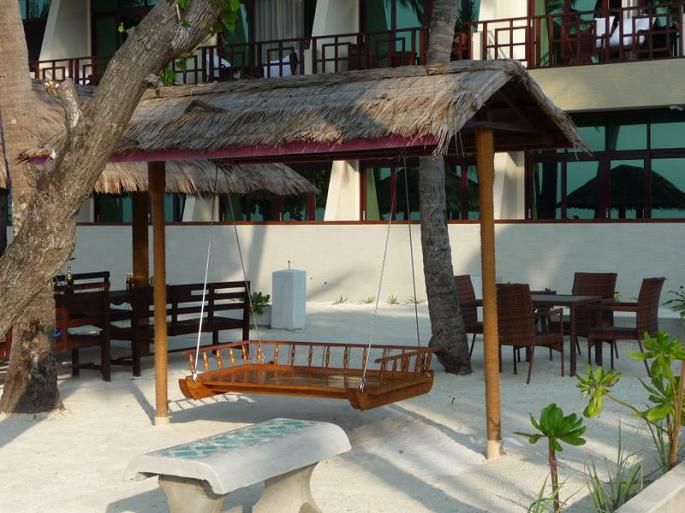 闭目躺着沙滩床上感受海的气息或在门前的树阴下用酒店的WIFI上网