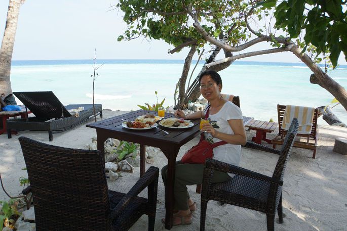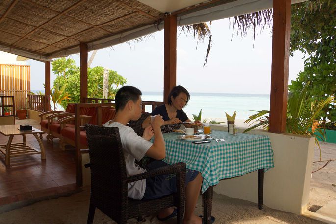 房间里没有一次性洗漱用品配备,但非常干净,早上8-10点有免费自助早餐,吹着海风品着美点和果汁不知不觉就到了10点,中餐也就省了。不过我们发现岛上也找不到吃中餐的地方,自己带些饼干牛肉干等过去就行了。