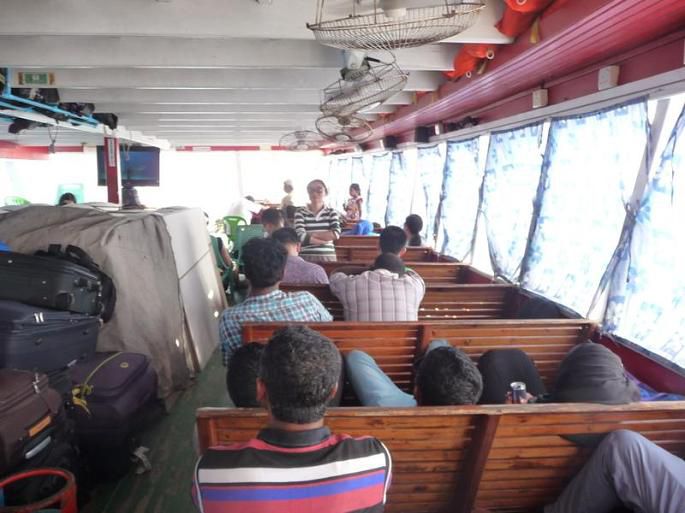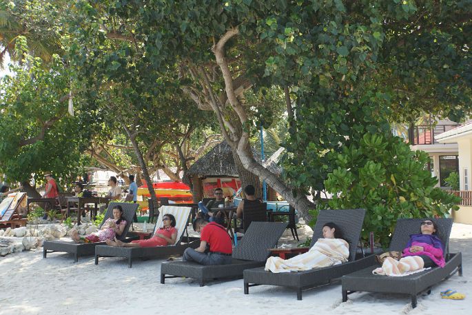 马累不大走马观花2个小时足够,但要预留找去南马累环礁岛的渡船时间,马累每天下午仅有一趟(客货混装)去南马累环礁岛的渡船,票价每人2美金,航行两个多小时 。一定要在上到马累岛时先找到该船的位置和了解开船的时间再去玩,以免错过登船时间岛上预定的房间就作废了