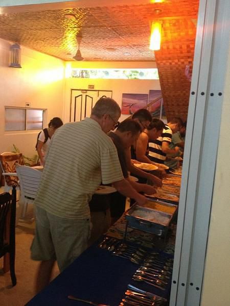 岛上吃晚餐的地方有很多,ARENABEACH酒店自助晚餐每人12美金(含服务费和税费),水果和食品的品种不少,我们有两位同伴因为WHITESHELL酒店房间不够被安排住到这里(不用补房差),这ARENABEACH比WHITESHEL更上档次,标间135美金(含自助早餐),房间的洗刷用品、电源转换插头、电吹风和电水壶样样齐全