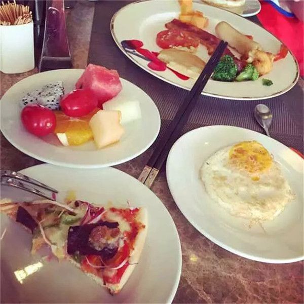 酒店早餐还不错,品种齐全,味道也很赞,ivan把他盘子里的食物都吃光光了。