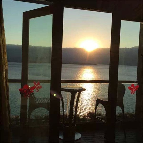 因为之前没有定酒店,所以到了邛海花了1个小时挨家选,酒店很多,现在是年后的淡季,基本都有空房,价格有150起的普通经济客房,也有2000的别墅套房。最终选择了全海景房的赛波府840元/天。虽然说他家的房价、设施整体性价比不算太高,但是全海景房还是超赞的,坐在阳台上,金黄的霞光和碧蓝的海水交相辉映,是多么的放松,心情会非常好。房间里的设施齐全,电动窗帘,温馨的彝家风格布置。整个感觉个人觉得还是非常好的。